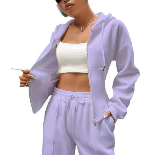 Hooded Cardigan Slim Fit Casual Two-piece Suit Women