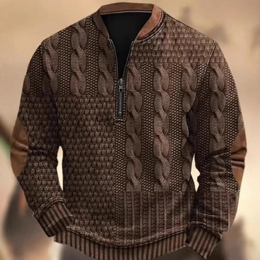 Men's Casual Half Zipped Stand Collar Long-sleeved Sweater