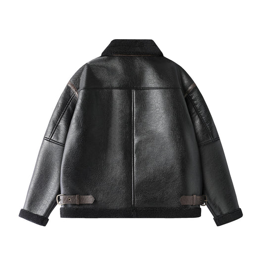 Men's Leather Jacket Men's Youth Loose Lapel Workwear Pu Leather Jacket