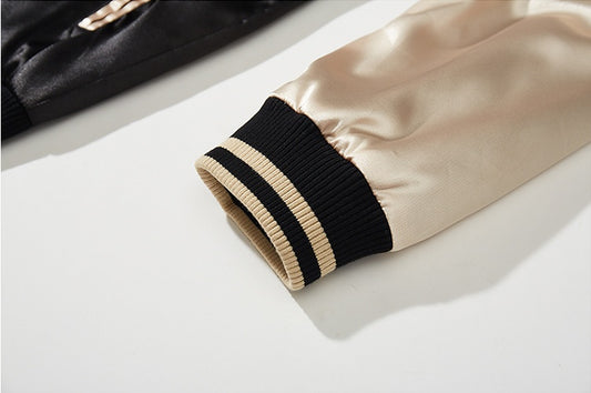 Men's Green Dragon Embroidered Baseball Jacket
