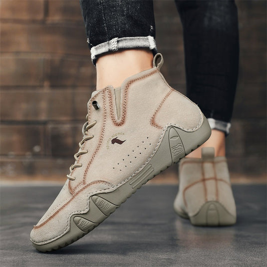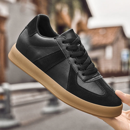 Men's Round Head Cowhide Surface Breathable Casual Skateboard Shoes