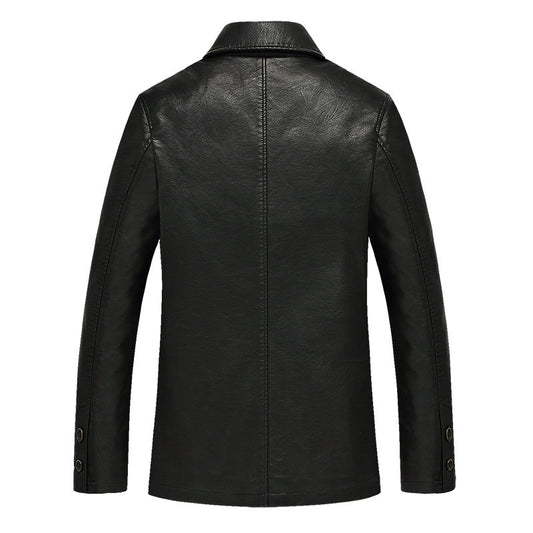 Middle-aged And Elderly Men's Cotton Lapel Leather Jacket