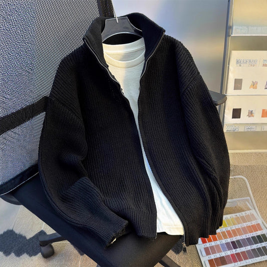 Mens Hip-Hop Retro Zip-Up Knitted Cardigan Warm Sweater