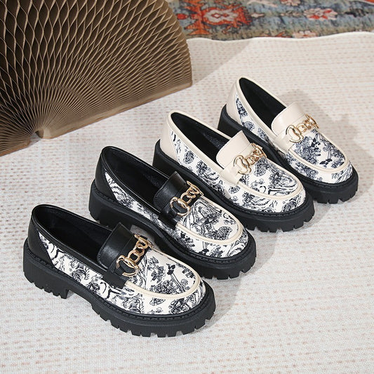 Plus Size National Style Muffin Platform Loafers Female Fashionable Golden Chain