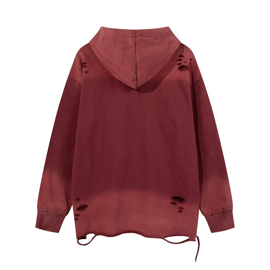 Water Washed Hole Hooded Sweater Affixed Cloth Hoodie