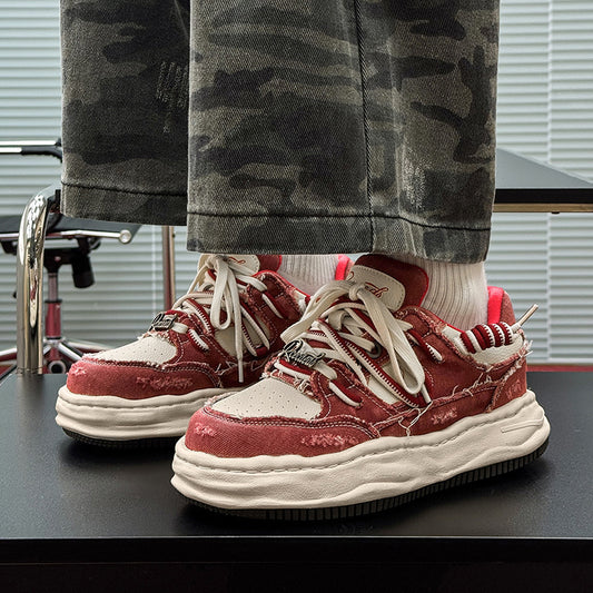 Washed And Dissolved Thick Bottom 7CM Invisible Height Increasing Insole Shoes Men's Sports Casual Borad Shoes