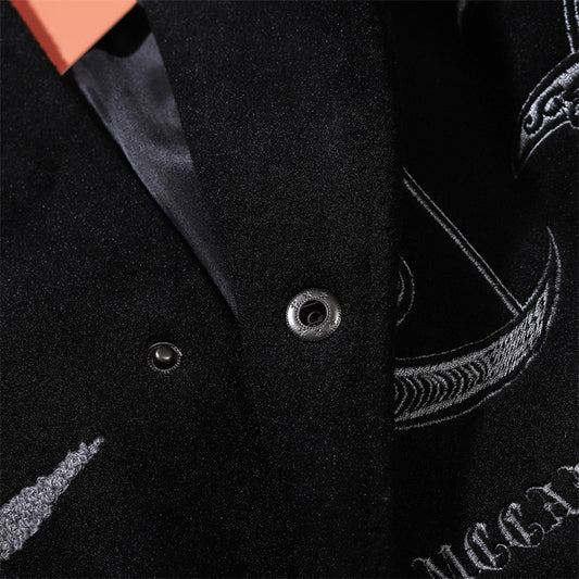 Vintage Flame Embroidered Jacket Jacket Baseball Uniform