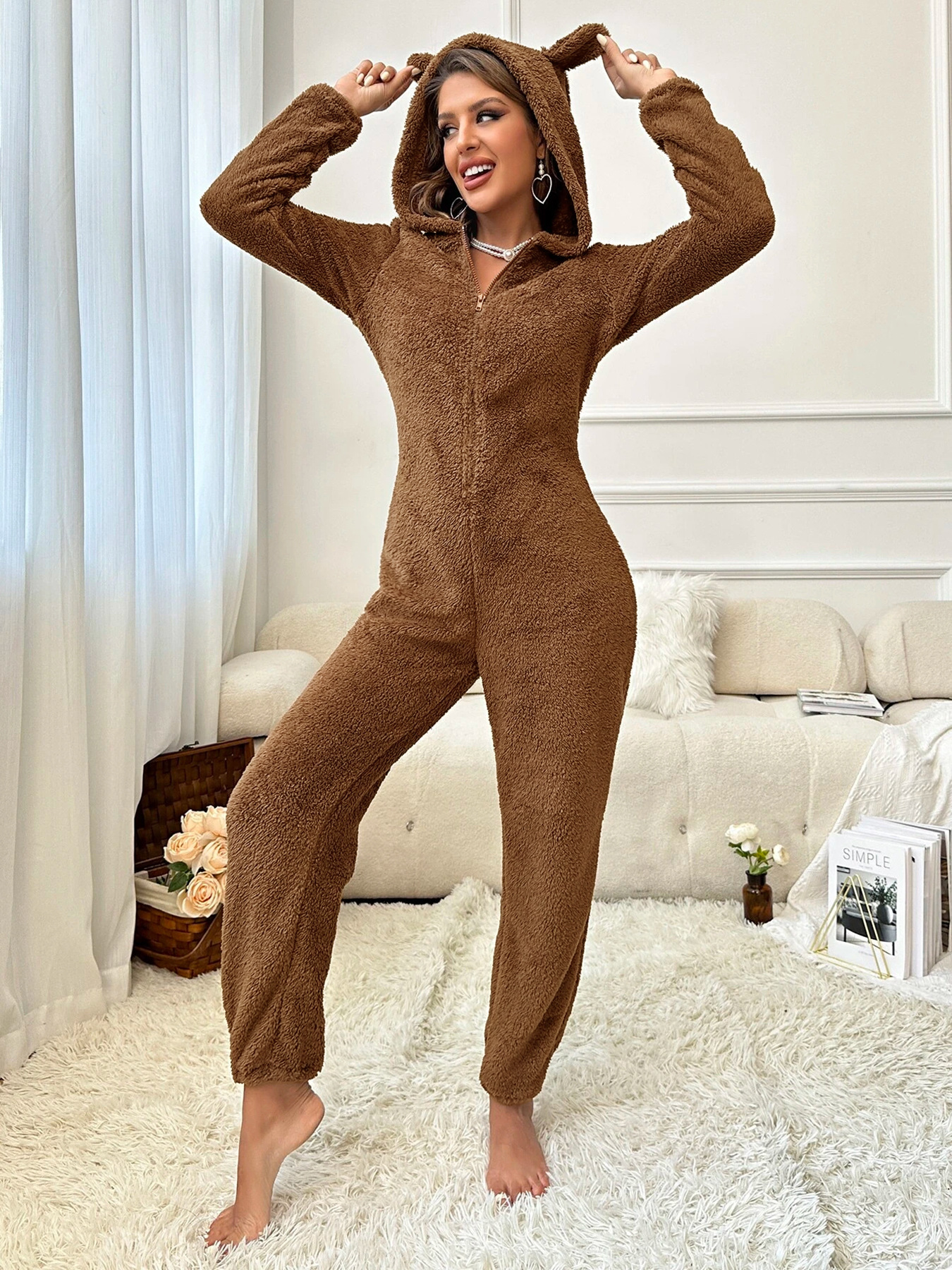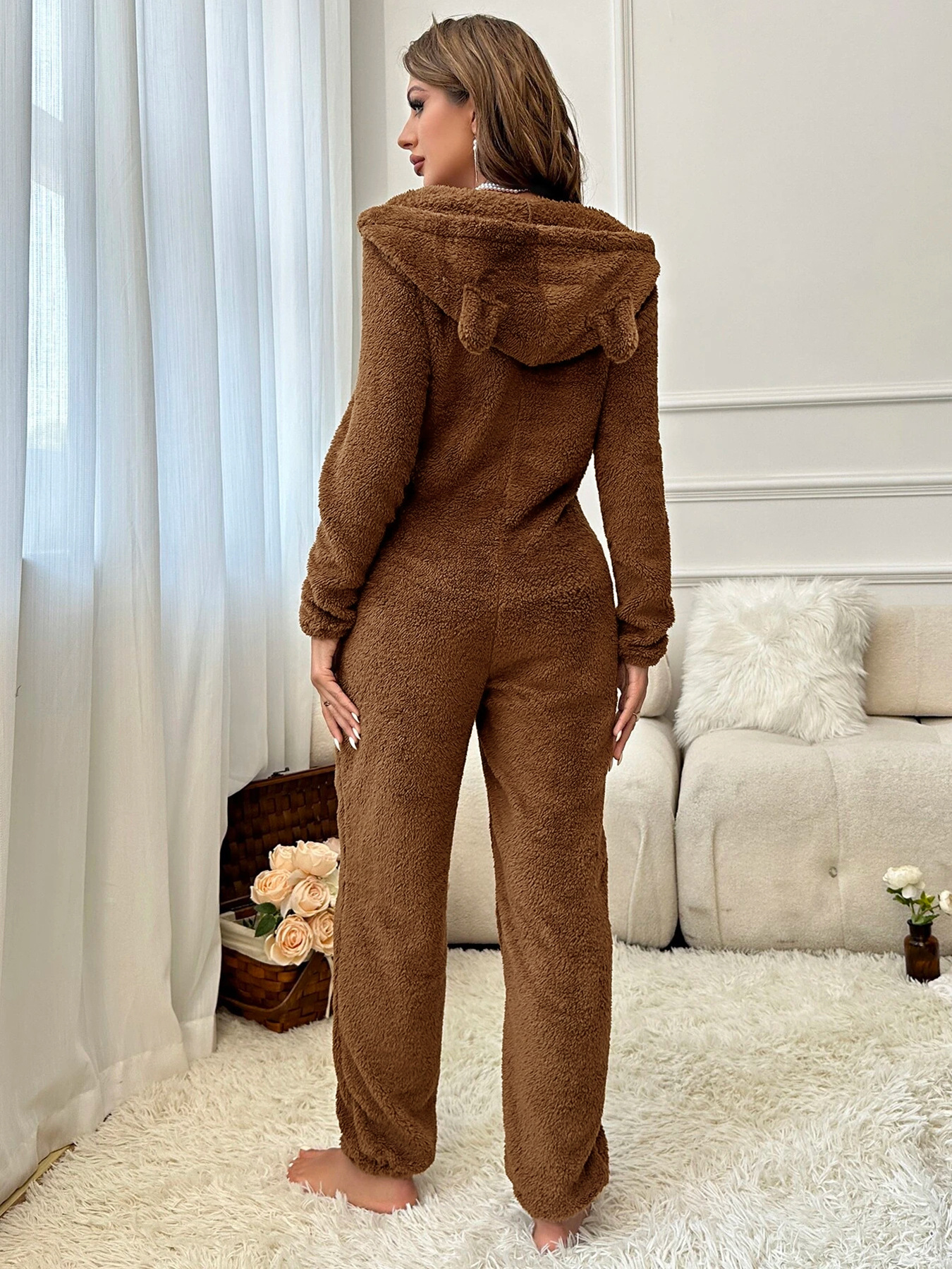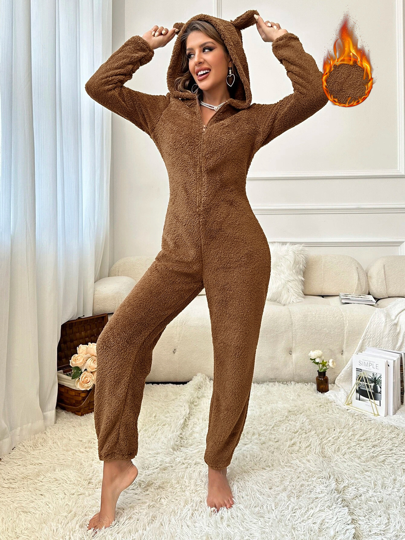 Fleece-lined Thick Furry Onesie Hooded Pajama Homewear