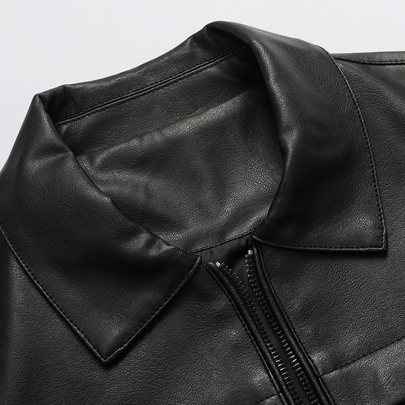 Men's Motorcycle Leather Jacket Slim Lapel Casual Leather Jacket