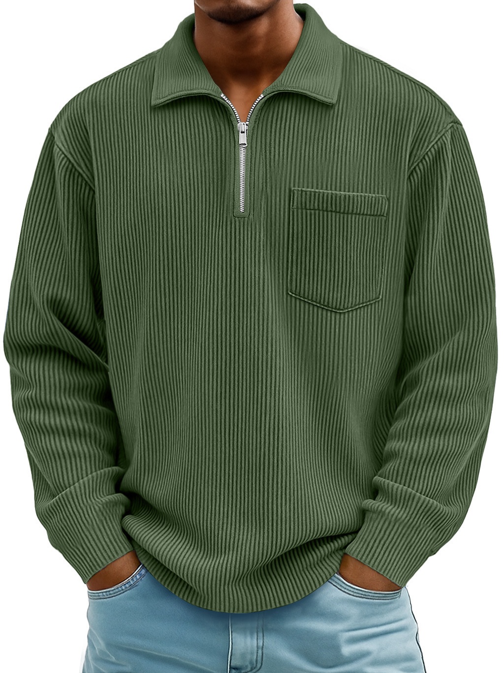 Men's Solid-color Henley Zip-up Casual Long-sleeve Hoodie