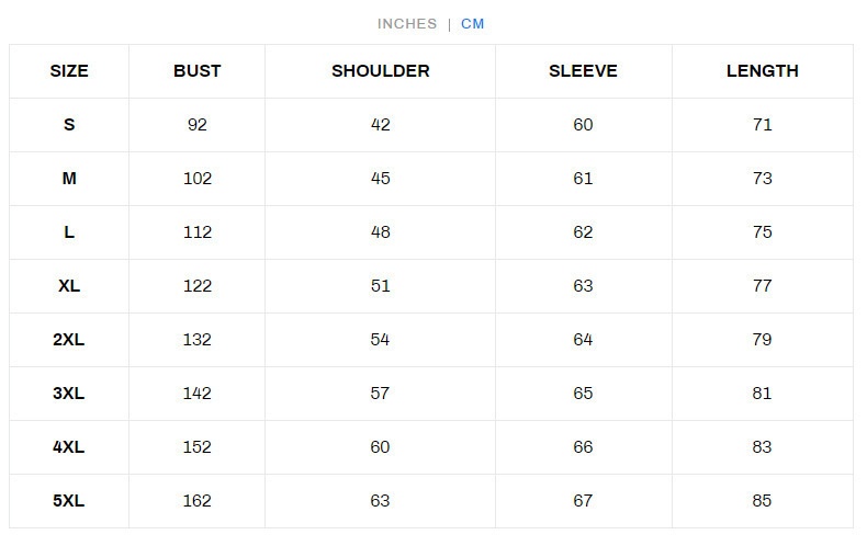 Sizes: S, M, L, XL, 2XL, 3XL, 4XL, 5XL