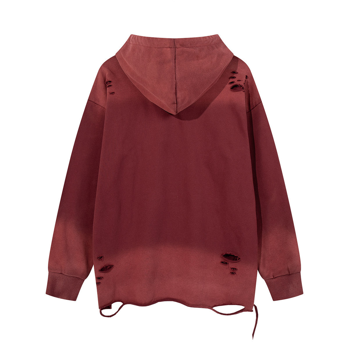 Water Washed Hole Hooded Sweater Affixed Cloth Hoodie